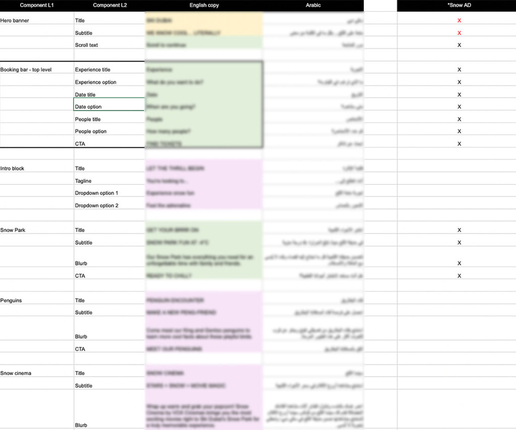 - Built a Global Snow content design system and content strategies for the Snow Abu Dhabi and Snow Oman entertainment parks.